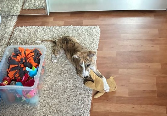 Und schwupps sind sie groß… Seit gestern sind die Zwerge 8 Wochen auf der Welt und erfreuen mein Herz. Mit Wehmut muss ich sagen, dass die Zeit viel zu schnell vergangen ist. Im Laufe der Woche steht dennoch einiges für die Kleinen an. Neben der ersten Impfung mit Chip setzen steht am Wochenende die Wurfabnahme an. Und gleich danach wird uns schon die kleine Mithra, die übrigens ihren Namen behalten wird, verlassen. Sie tritt den langen Weg Richtung Berlin an. Montag geht dann Diva (OV Minerva) und es bleibt nur noch Maximus. Der darf dann die verbliebenen weiblichen Whippetdamen ärgern bis er dann auch ein neues Daheim gefunden hat. Was das Laufen an der Leine angeht, hatten wir erst Temperaturen zum Dahinschmelzen und jetzt nur Regen der mich überlegen lässt, ob ich den Kleinen eher schwimmen beibringen muss. Na ja, zumindest kennen sie auch nasse Füße. Ein kleiner Einblick des heutigen Versuchs bei halbwegs annehmbarem Wetter gibt es hier zu sehen.